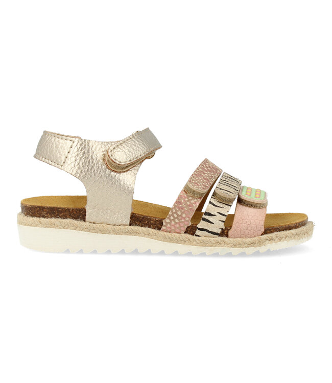 Gold Combi Sandalen met klittenbanden en extra smalle leest voor meisjes.