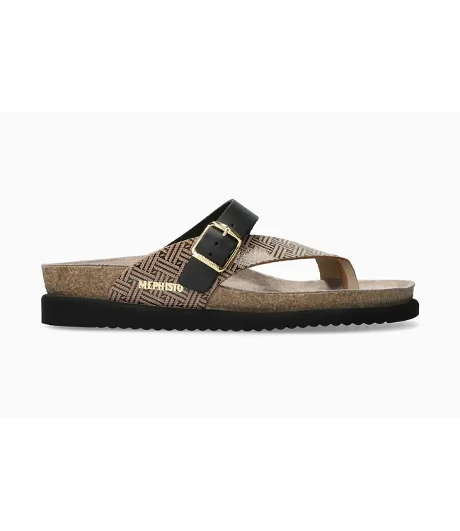 Deze heerlijk lichte tussenzool voor dames heeft een casual look en voelt heerlijk aan. De unieke SOFT-AIR-technologie die in de kurken tussenzool is geïntegreerd, zorgt ervoor dat je niet moe wordt tijdens het lopen. De AIR-RELAX technologie respecteert de anatomie van de voet om te voorkomen dat de kurkboog inzakt. De band is verstelbaar dankzij de gespsluiting. Deze zwarte sandaal voor dames is gemaakt van metallic-leer met een fantasieprint aan de voorkant en glad leer aan de achterkant van de voet.