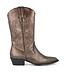 Deze Red-Rag dames enkellaars is uitgevoerd in brons metallic leer met cowboy/ western accenten en een ritssluiting aan de binnenzijde. De voering en het vaste voetbed zijn van leer met een contrefort voor extra draagcomfort. De enkellaars heeft een rubberen loopzool met een hakhoogte van 3,5 cm. Deze Red-Rag 77506 371 Bronze Metallic heeft een normale pasvorm.